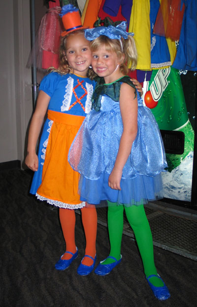 Thank you Craig for your reply. As it was the first time I had ordered with you and as it was at the theater group's suggestion and also since I had ordered well in advance, I never thought to ask, but I appreciate knowing for the future. You products really are very nice and all the kids looked great in their costumes - I would definiately recommend your site to friends for all the color choices you offer! By the way, the person I spoke to on the phone that day asked if I'd send in a picture in exchange for arranging for the overnight shipping. I'm attaching a photo of my daughter Colleen (on the right) and her fellow Munchkin in "The Wizard of Oz." As you can see, they are both wearing your tights and under Colleen's costume she is wearing one of your leotards that match her dress. Enjoy!